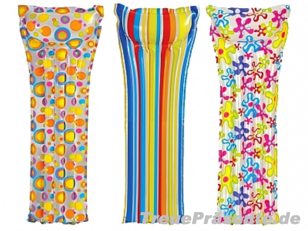 Sie sind hier: TreuePräsente.de » Festartikel » Saisonartikel » Urlaubsartikel / Badeartikel Luftmatratzen bunt Luftmatratzen bunt Planschbecken Jumbo Luftmatratzen einfarbig