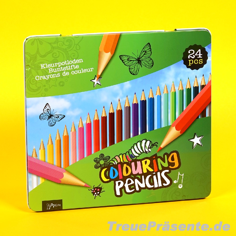 Sie sind hier: TreuePräsente.de » Präsente » Büro & Schreibwaren Buntstifte in Metallbox Buntstifte in Metallbox Design-Kugelschreiber 24-teiliges Buntstifte-Set mit Anspitzer