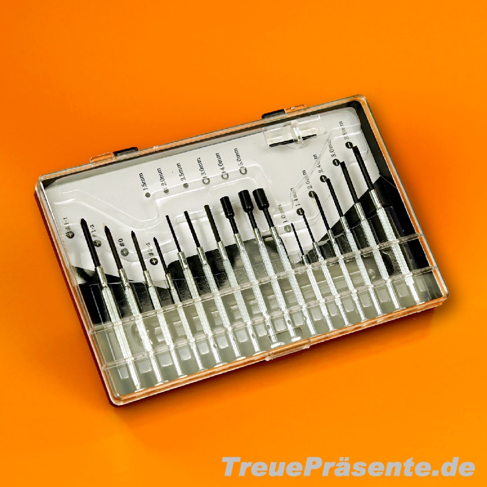 Sie sind hier: TreuePräsente.de » Präsente » Werkzeug, Auto, Fahrrad Präzisions-Schraubendreher-Set 16-teilig Präzisions-Schraubendreher-Set 16-teilig 306155 Schraubenzieher-Stift mit Aufsätzen 2er-Gepäckspanner-Set