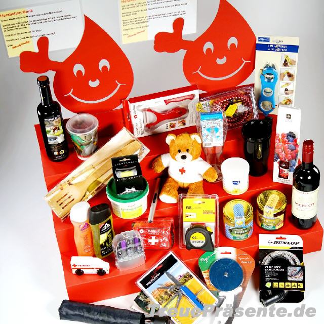 Werte Deine Blutspende-Geschenke auf und präsentiere sie übersichtlich auf meinem Treppen-Display.