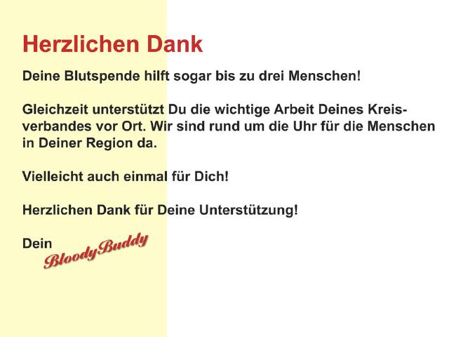 "Herzlichen Dank für Deine Blutspende! Dein Kreisverband ..."