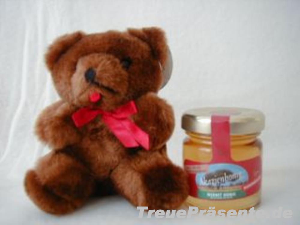 Sie sind hier: TreuePräsente.de » Präsente » Lebensmittel Honig mit Plüschbär Honig mit Plüschbär Bio Waldhonig Akazienhonig Waldhonig